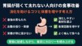 「すぐお腹いっぱいになる」「食欲がわきにくい」という食への関心が薄いタイプも多いです。胃容量が小さく感じやすい方は、一度に食べる量の上限が低く、食事を増やそうとしても続かないという状況になりやすいです。
